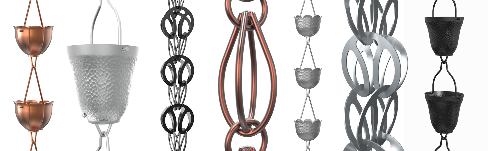 Rain chains are a functional yet elegant replacement for conventional gutter downspouts. We offer high quality copper and aluminum styles as well as accessories, all at extremely competitive prices. Also, read our "what to know before you buy" article!